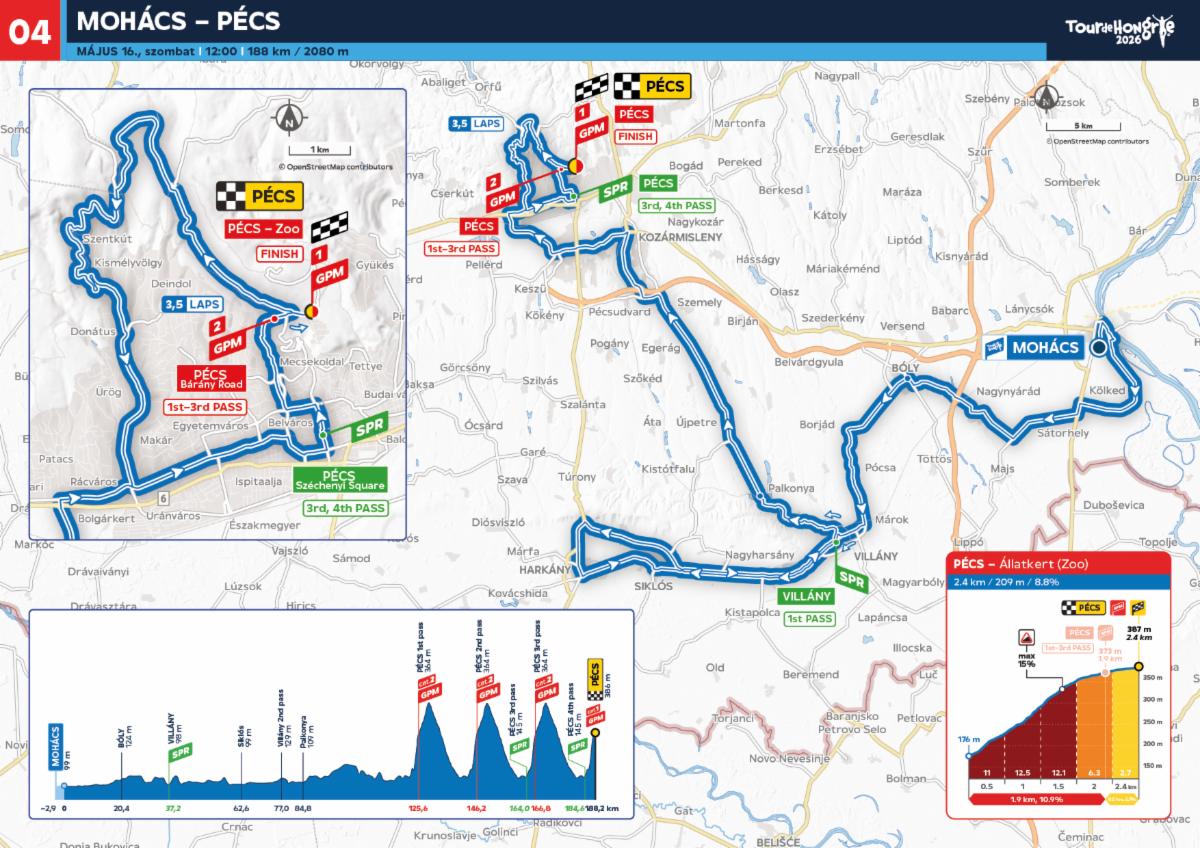 A 2026-os Tour de Hongrie legnehezebb etapjára május 16-án kerül sor. A mohácsi rajtot követően egy újabb, a Tour de Hongrie által ritkán látogatott régió, a Villányi-hegység felé kanyarodik a mezőny. A Villány-Harkány-Siklós hurkot követően érkeznek meg a versenyzők Pécsre, ahol a rettegett Bárány út meredekét négyszer is le kell küzdeniük, mielőtt az Állatkert előtt célba érnének. A 188 km hosszú, több mint 2000 méternyi szintemelkedést tartalmazó etap kulcsfontosságú lesz az összetett győzelem szempontjából.